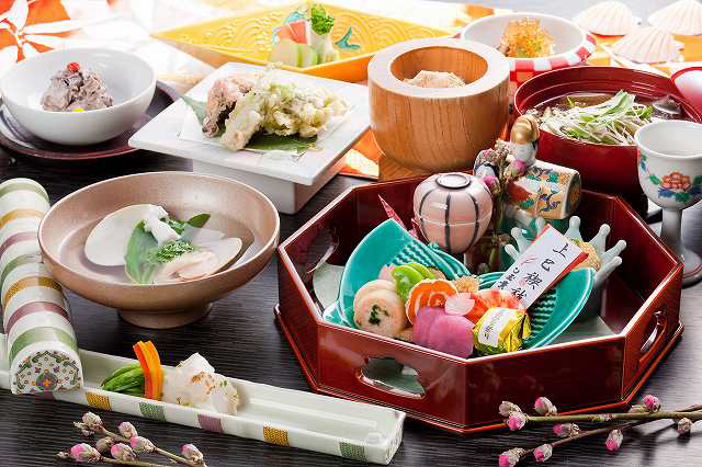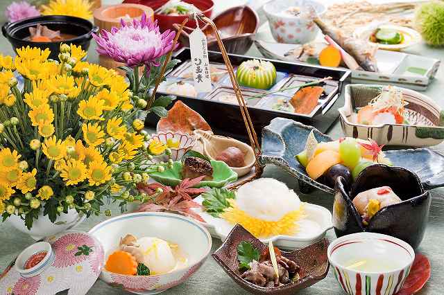 四季折々の山形のおいしい食材(山菜・月山竹・鮎・きのこ・紅花若菜・牛肉・豚肉)を盛り込んだ地採地消の御献立になっております。
